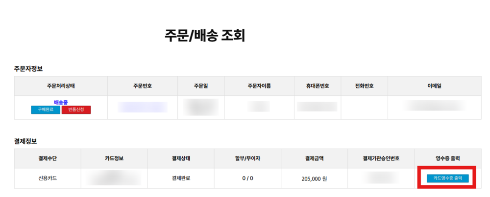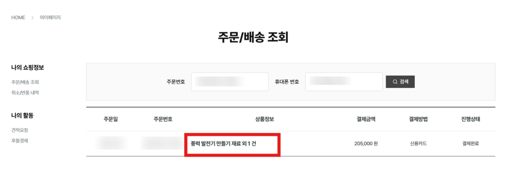 2. 주문 번호와 휴대폰 번호를 입력한 뒤 검색 버튼 클릭!