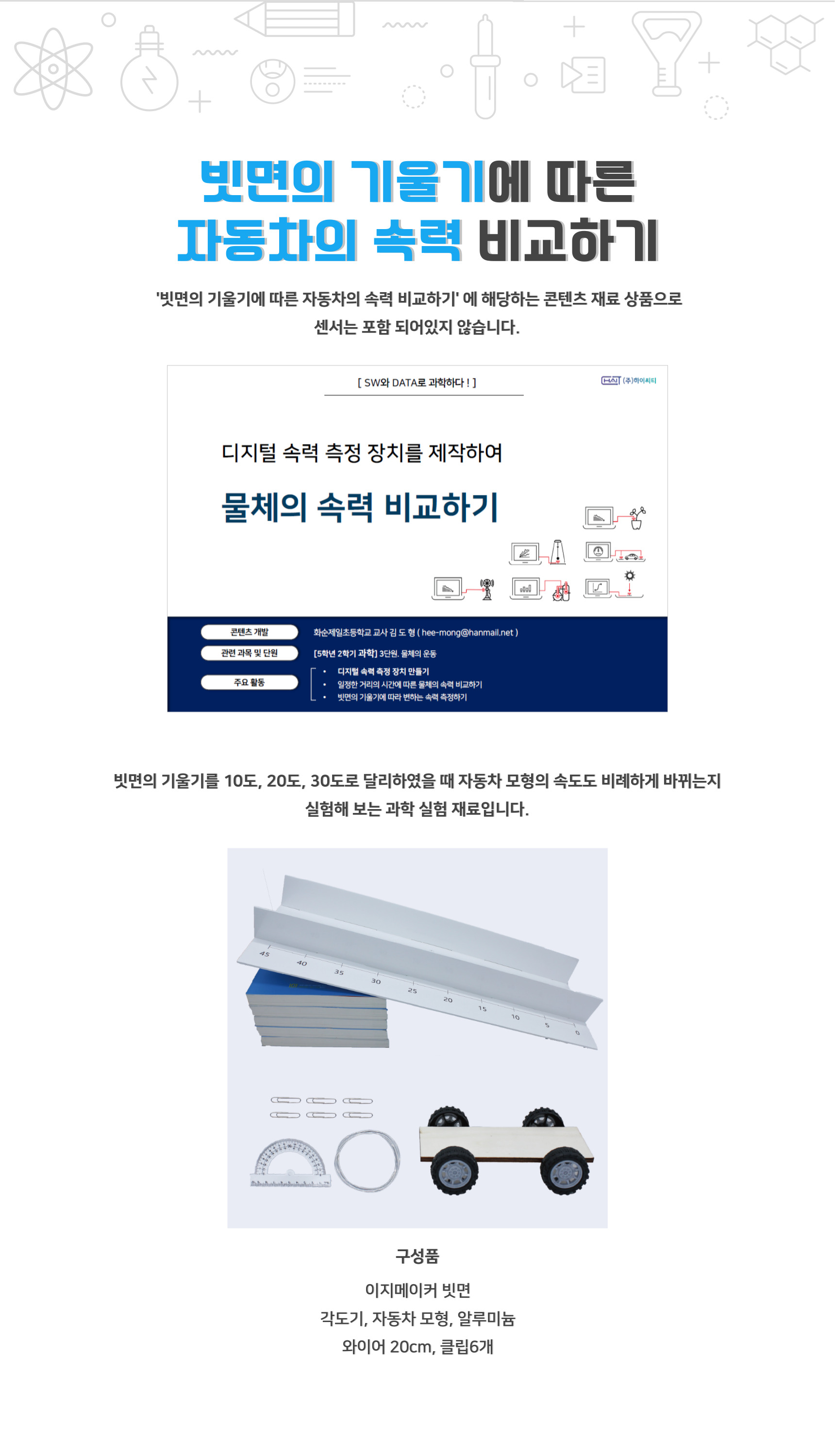 빗면의 기울기에 따른 자동차의 속력 비교하기 콘텐츠 재료